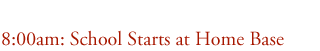 The next Every day begins with the Morning Meeting at "homebase," children's assigned classroom. During the first ten minutes or so, students are sharing issues of interest or concern to them, which vary from questions about what's for lunch to serious discussions about local or national news events. Some mornings teachers may introduce a topic, such as asking kids to imagine their future in the 21st century, to get them thinking. Later in the day, students carry out an assignment related to that topic in social studies or another class.